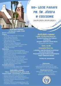 Od 14 do 20 września 2025 roku parafia pw. św. Józefa w Czeczewie będzie obchodzić swój wyjątkowy jubileusz – 100-lecie istnienia. Wydarzenie, rozpisane na kilka dni, łączy duchowość z kulturą, muzyką i lokalną tradycją. W programie znalazły się koncerty, premiery artystyczne oraz uroczysta Msza święta z udziałem arcybiskupa.