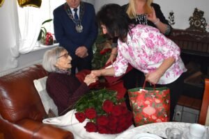 Solenizantkę, która obecnie przebywa w Gdańsku, odwiedzili m.in.: wójt Mirosław Kuczkowski, ks. proboszcz Tadeusz Knut, kierownik USC w Sierakowicach Agnieszka Kostuch oraz sołtys Dorota Kroll oraz bliscy.