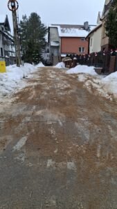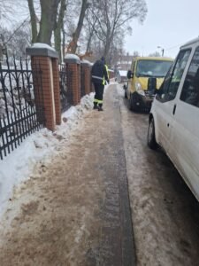 Służby spółki realizują bieżące prace związane z zimowym utrzymaniem dróg i ciągów pieszych. Obejmują one m.in. posypywanie nawierzchni mieszanką piasku i soli w miejscach o największym natężeniu ruchu pieszego i samochodowego, a także zabezpieczanie dojść do obiektów użyteczności publicznej. Działania prowadzone są również w godzinach popołudniowych i wieczornych, w zależności od aktualnej sytuacji pogodowej.