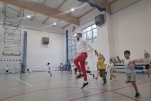 Gościem specjalnym i prowadzącym trening był koszykarz Paweł Pawłowski, który odwiedził szkołę, aby zaprezentować dzieciom podstawy treningu koszykarskiego. Podczas spotkania pierwszoklasiści brali udział w serii dynamicznych ćwiczeń rozwijających sprawność, koordynację i ogólną motorykę. Zajęcia zostały przygotowane w sposób dostosowany do wieku uczestników, dzięki czemu dzieci mogły uczyć się poprzez ruch i zabawę.