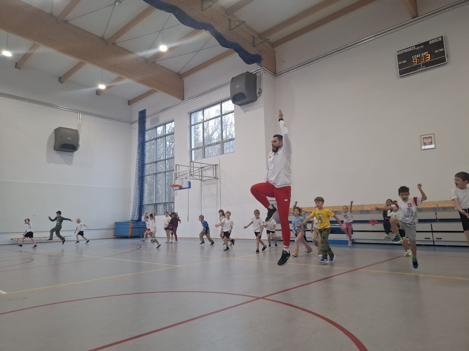 Gościem specjalnym i prowadzącym trening był koszykarz Paweł Pawłowski, który odwiedził szkołę, aby zaprezentować dzieciom podstawy treningu koszykarskiego. Podczas spotkania pierwszoklasiści brali udział w serii dynamicznych ćwiczeń rozwijających sprawność, koordynację i ogólną motorykę. Zajęcia zostały przygotowane w sposób dostosowany do wieku uczestników, dzięki czemu dzieci mogły uczyć się poprzez ruch i zabawę.
