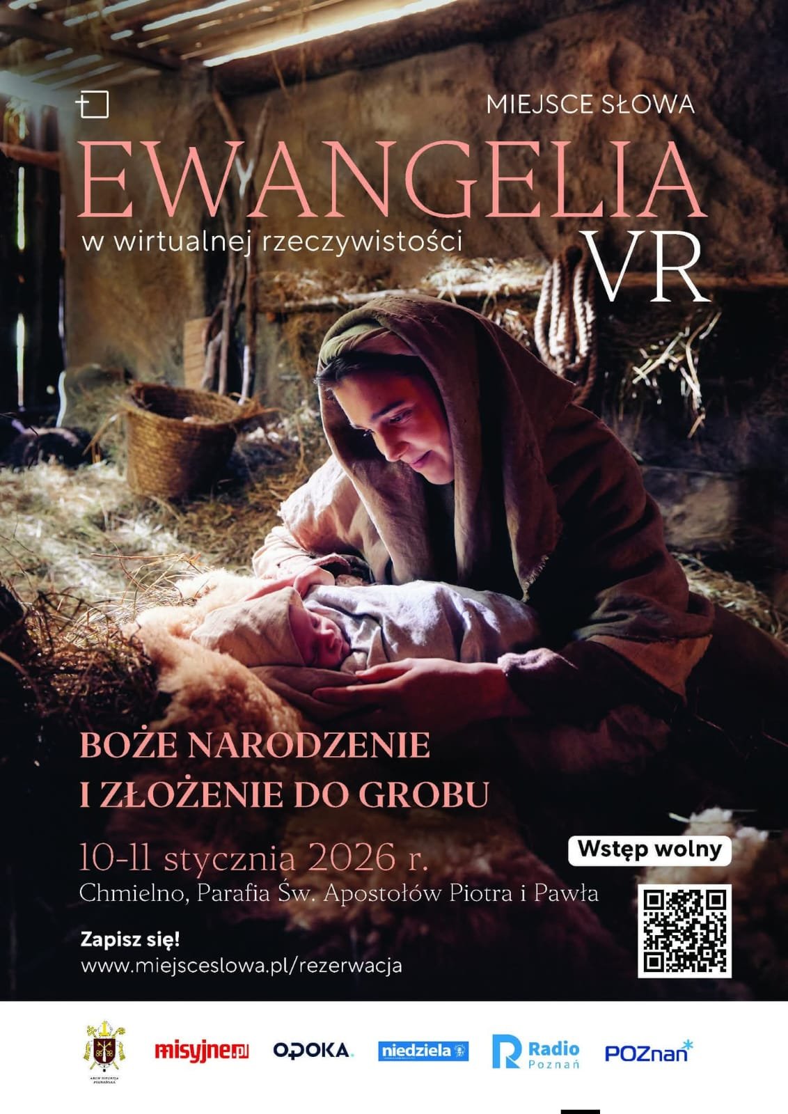 W dniach 10 i 11 stycznia w Gminnym Ośrodku Kultury, Sportu i Rekreacji w Chmielnie odbędą się pokazy ewangelicznych scen Bożego Narodzenia oraz Złożenia do Grobu, prezentowane z wykorzystaniem nowoczesnej technologii wirtualnej rzeczywistości (VR).