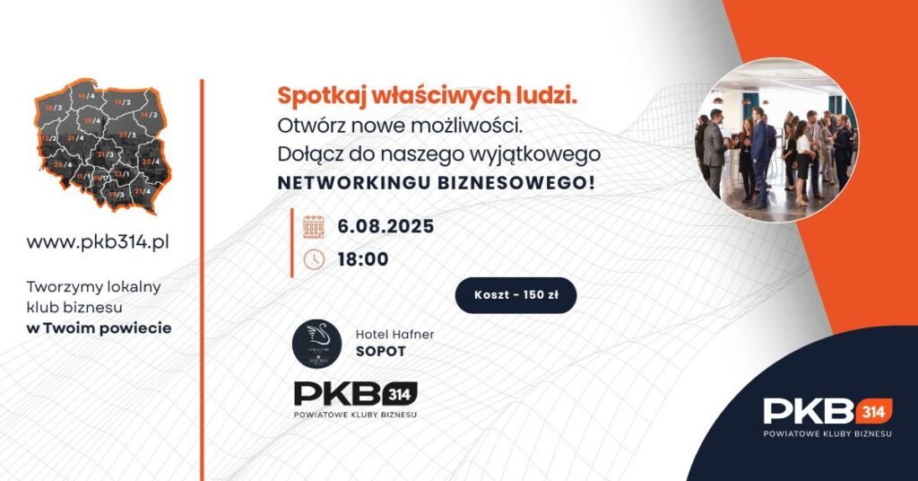 Przedsiębiorcy z Trójmiasta i okolic będą mieli niepowtarzalną okazję do zdobycia praktycznej wiedzy, nawiązania wartościowych relacji oraz odkrycia inspiracji do dalszego rozwoju. Już 6 sierpnia w Sopocie odbędzie się wyjątkowe spotkanie organizowane przez PKB 314 – przestrzeń biznesowa tworzona z myślą o osobach, które chcą działać skuteczniej, świadomiej i z pasją.