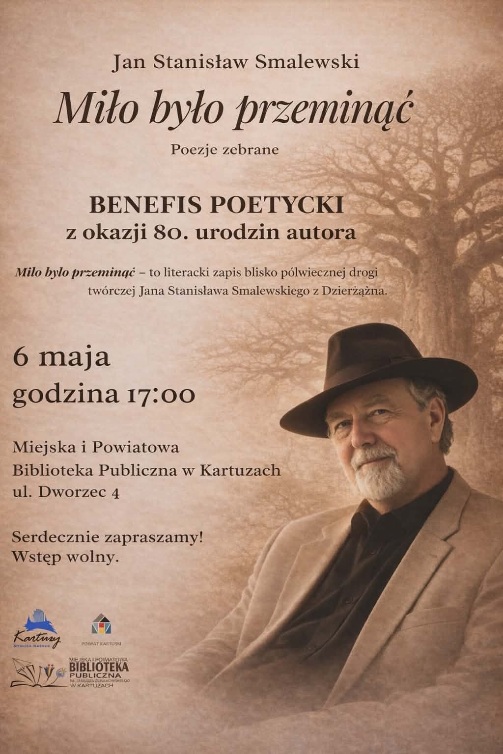 Z kolei 6 maja o godz. 17.00 odbędzie się benefis poetycki Jana Stanisława Smalewskiego z okazji jego 80. urodzin.