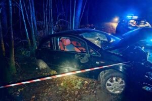 Funkcjonariusze wstępnie ustalili, że kierujący oplem 35-letni mężczyzna jadąc w kierunku miejscowości Somonino zjechał na lewe pobocze, a następnie uderzył w drzewo.