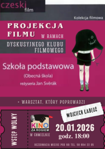 Miłośnicy kina i spotkań z filmem w formie dyskusyjnej mogą już rezerwować czas. We wtorek, 20 stycznia 2026 roku o godzinie 18.00 w Kinie za Rogiem w Chmielnie odbędzie się pokaz filmu „Szkoła podstawowa (Obecná škola)” w reżyserii Jana Svěráka.