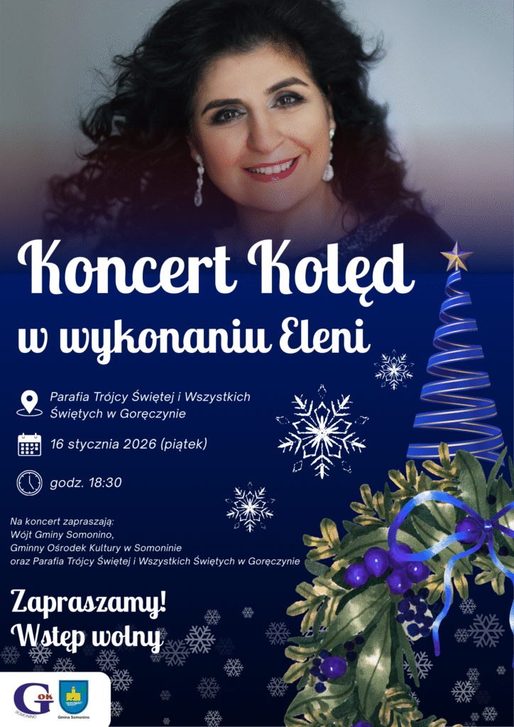 W piątek, 16 stycznia 2026 roku o godz. 18.30, w Parafii Trójcy Świętej i Wszystkich Świętych w Goręczynie odbędzie się koncert kolęd w wykonaniu Eleni – jednej z najbardziej znanych i cenionych polskich artystek.