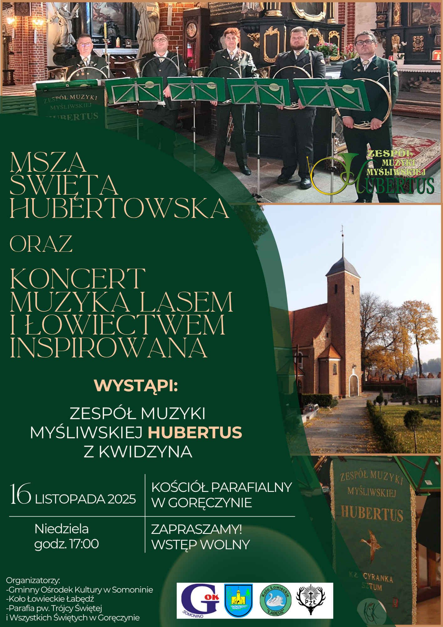 Tradycja, duchowość i piękno muzyki myśliwskiej spotkają się w wyjątkowym wydarzeniu, które odbędzie się w niedzielę, 16 listopada 2025 r., o godz. 17.00 w Kościele Parafialnym pw. Trójcy Świętej i Wszystkich Świętych w Goręczynie.