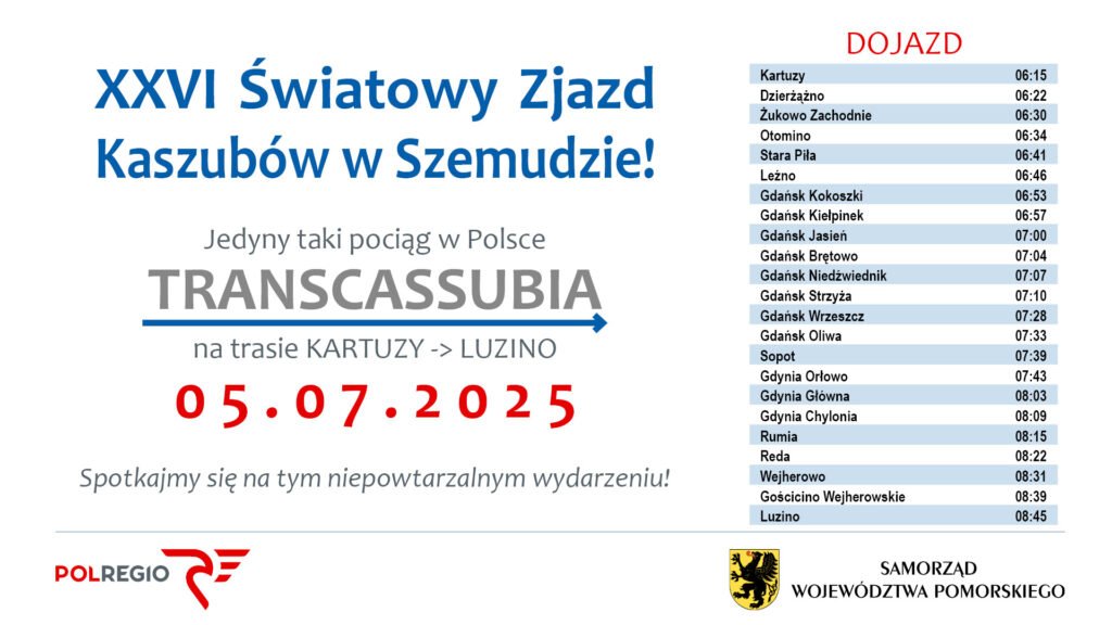 Na zjazd przyjedzie specjalny pociąg z uczestnikami z całego regionu. Organizatorzy zapowiadają także stoiska z regionalnymi przysmakami, występy kaszubskich zespołów oraz okazję do wspólnego śpiewania kaszubskich pieśni.