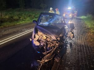 Kamela. Poważne czołowe zderzenie na drodze powiatowej – ranne dwie osoby – AKTUALIZACJA