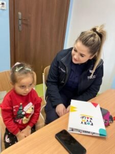 Kilka dni temu p. o. oficera prasowego Komendy Powiatowej Policji w Kartuzach st. sierż. Aleksandra Philipp spotkała się z dziećmi z przedszkola “Pozytywka” z siedzibą w Kartuzach. Funkcjonariuszka rozmawiała z najmłodszymi o bezpieczeństwie, zasadach poruszania się po drodze, przedstawiła zawód policjanta oraz opowiedziała, jak powinny wyglądać bezpieczne zabawy na śniegu.