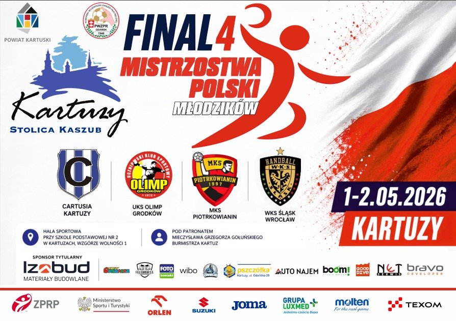 Już 1–2 maja 2026 roku Kartuzy staną się areną jednego z najważniejszych wydarzeń w młodzieżowej piłce ręcznej w Polsce. To właśnie tutaj rozegrany zostanie turniej Final Four Mistrzostw Polski Młodzików, który wyłoni najlepszą drużynę w kraju.