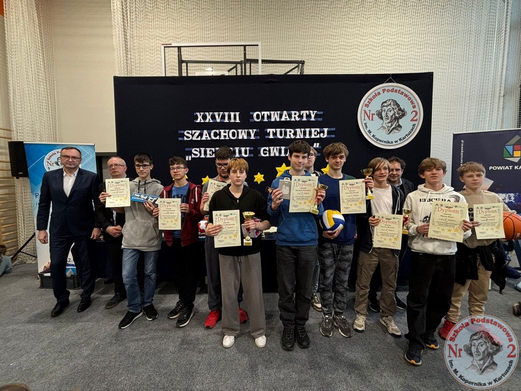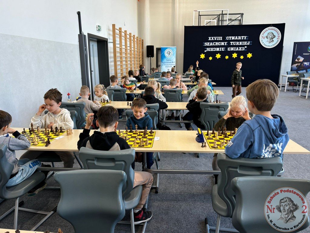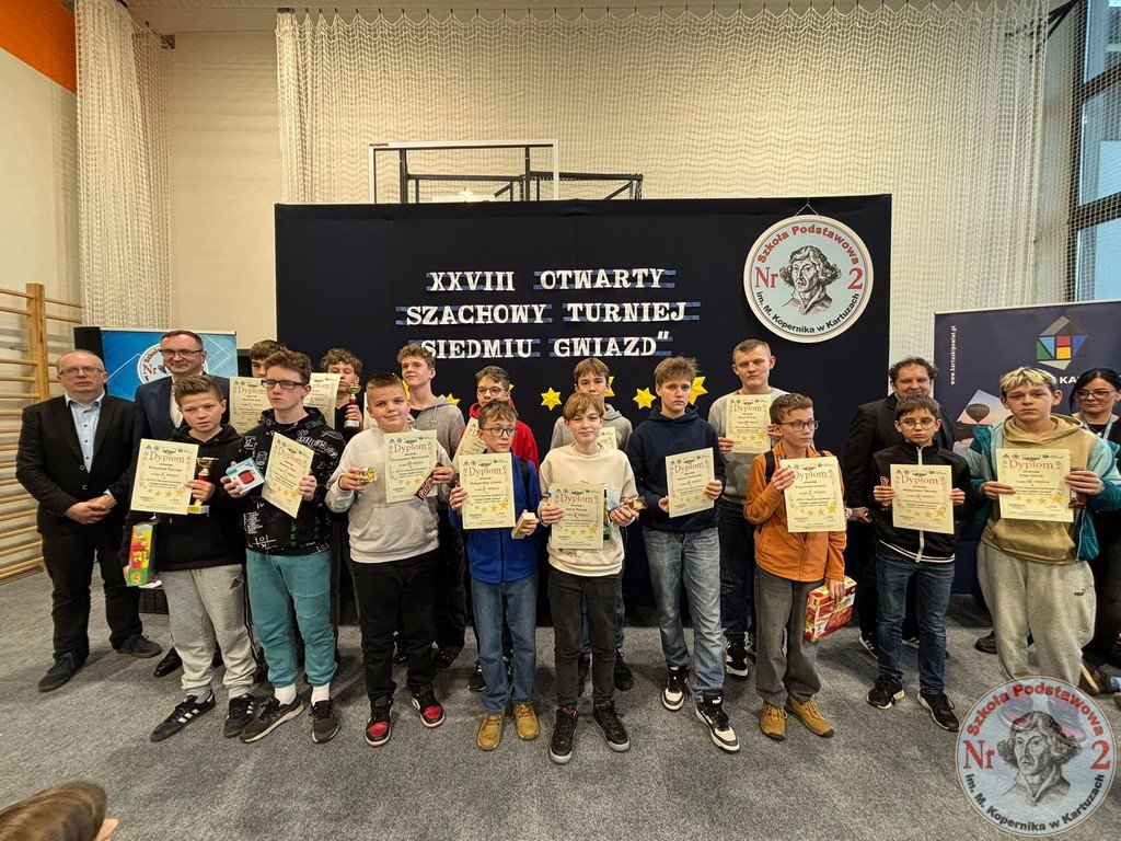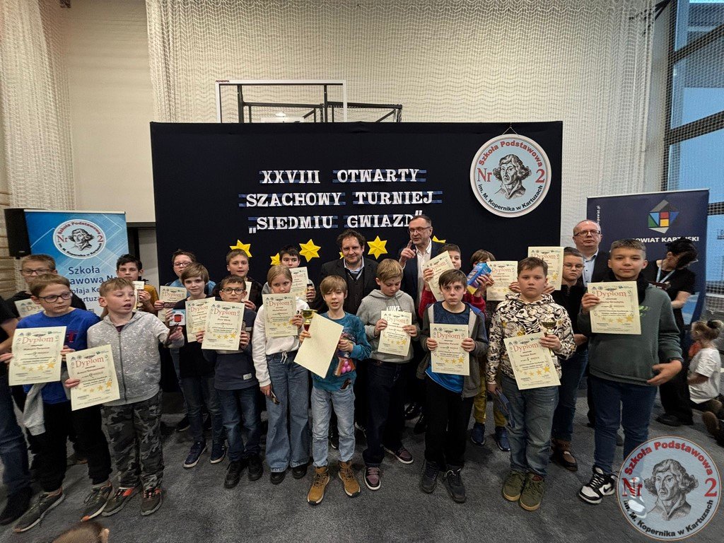 W sobotę, 15 listopada 2025 roku, Szkoła Podstawowa Nr 2 im. Mikołaja Kopernika w Kartuzach ponownie zamieniła się w centrum szachowych emocji. To właśnie tutaj odbyła się XXVIII edycja Otwartego Szachowego Turnieju „Siedmiu Gwiazd”, współorganizowanego przez Stowarzyszenie Przyjaciół Szkoły Podstawowej Nr 2 „Copernicus” oraz „Dwójkę”. Wydarzenie, które od lat cieszy się ogromnym zainteresowaniem, w tym roku ponownie pobiło rekord frekwencji – udział wzięło aż 141 młodych szachistów z całego województwa pomorskiego.