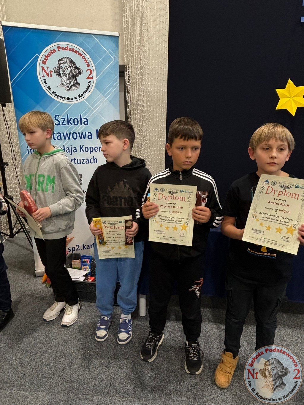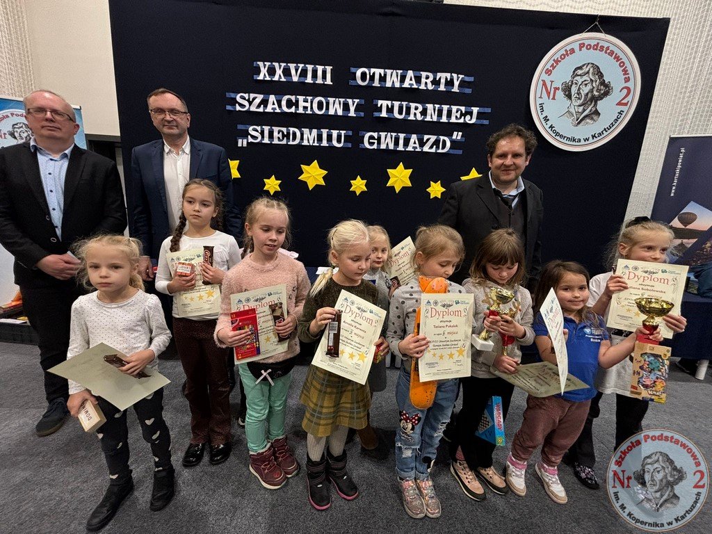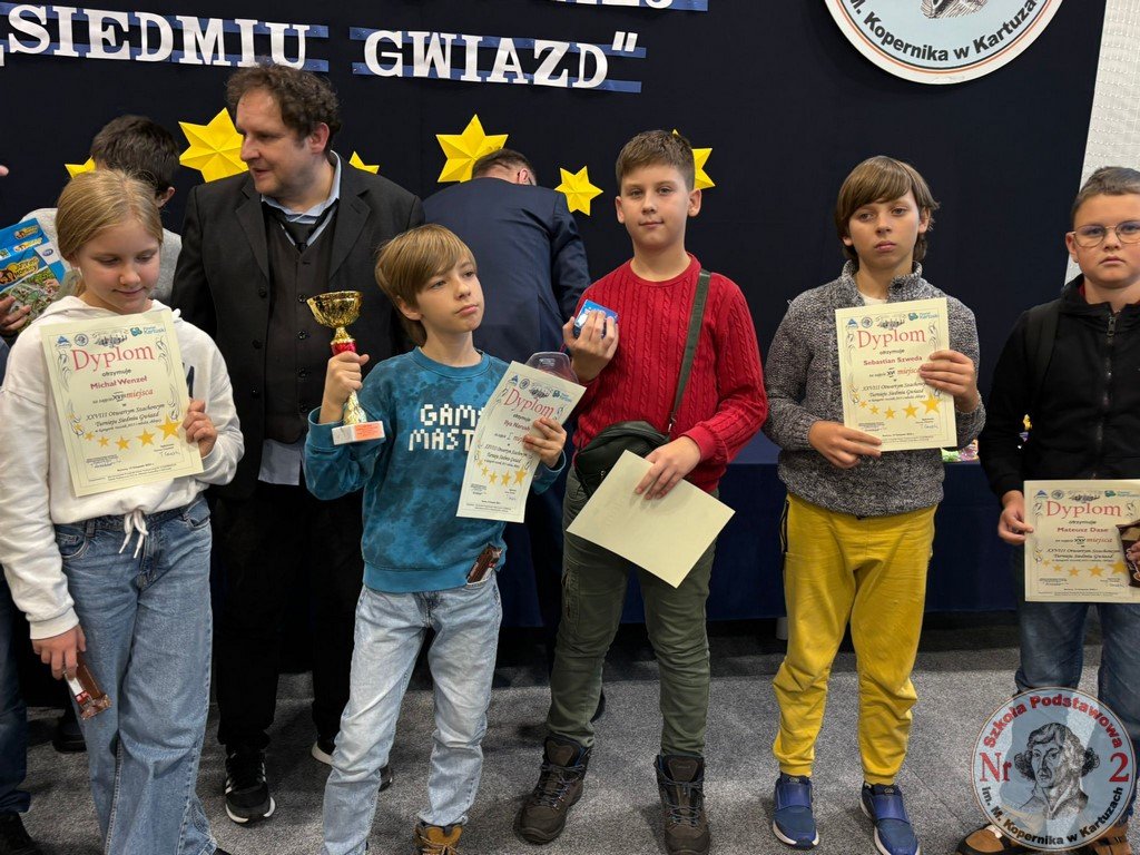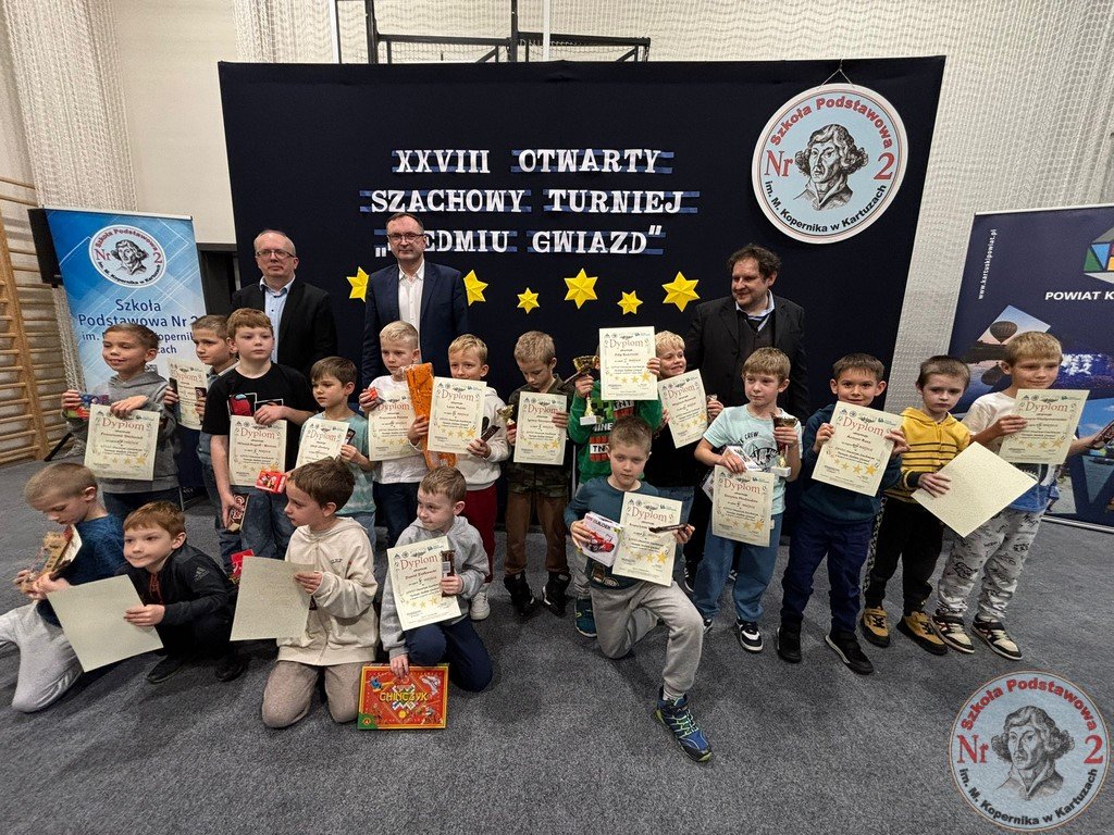 W sobotę, 15 listopada 2025 roku, Szkoła Podstawowa Nr 2 im. Mikołaja Kopernika w Kartuzach ponownie zamieniła się w centrum szachowych emocji. To właśnie tutaj odbyła się XXVIII edycja Otwartego Szachowego Turnieju „Siedmiu Gwiazd”, współorganizowanego przez Stowarzyszenie Przyjaciół Szkoły Podstawowej Nr 2 „Copernicus” oraz „Dwójkę”. Wydarzenie, które od lat cieszy się ogromnym zainteresowaniem, w tym roku ponownie pobiło rekord frekwencji – udział wzięło aż 141 młodych szachistów z całego województwa pomorskiego.
