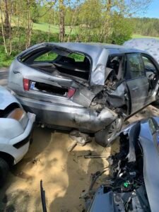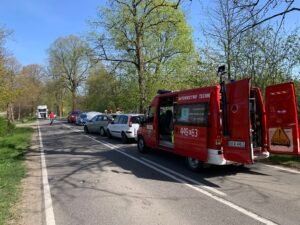 W poniedziałek, 28 kwietnia 2025 roku, o godzinie 14.51, strażacy zostali wezwani przez dyżurnego PSP w Kartuzach do kolizji czterech samochodów osobowych w miejscowości Karwacja (gmina Sierakowice).