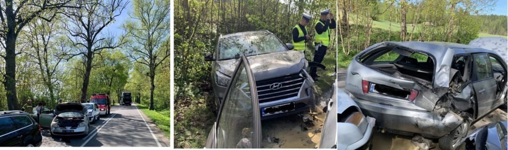 Na miejsce zadysponowano zastęp OSP Sierakowice, jednostkę PSP Kartuzy oraz patrol Wydziału Ruchu Drogowego KPP Kartuzy. Choć sytuacja wyglądała groźnie, na szczęście nikt nie odniósł obrażeń. Łącznie w pojazdach podróżowało 8 osób.