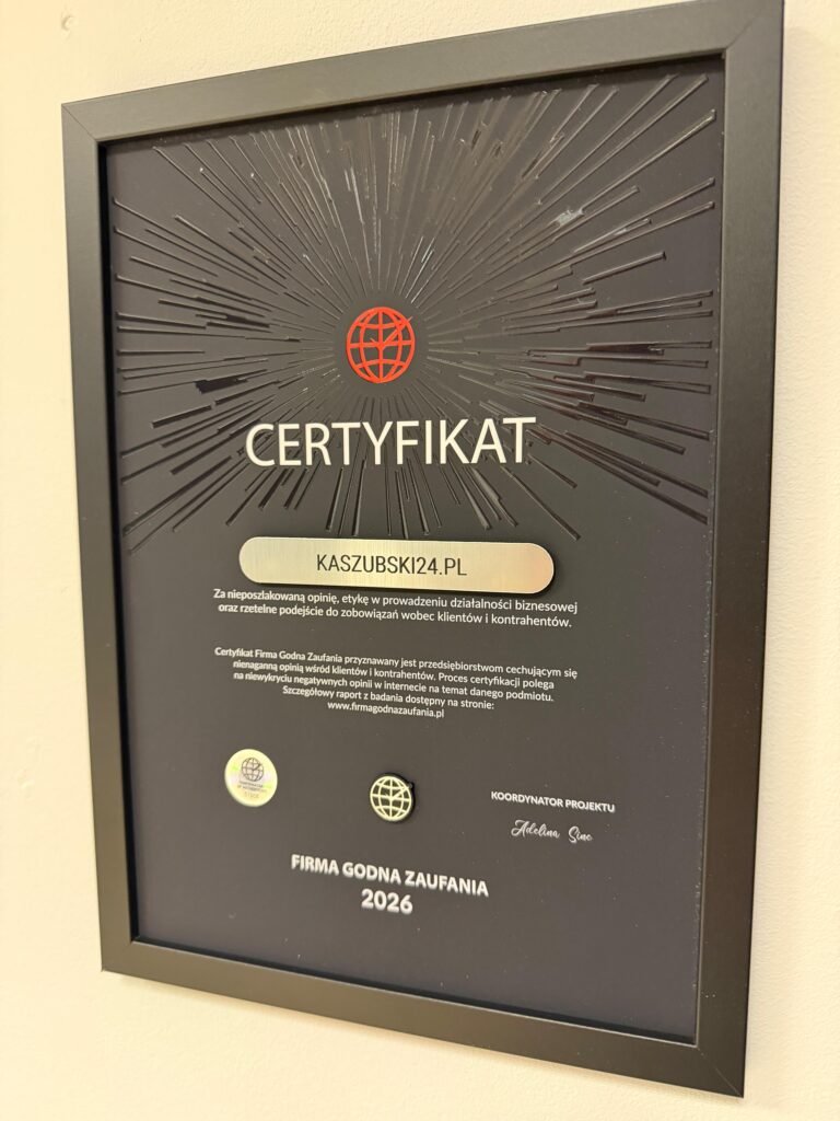Kaszubski24.pl z certyfikatem Firma Godna Zaufania 2026