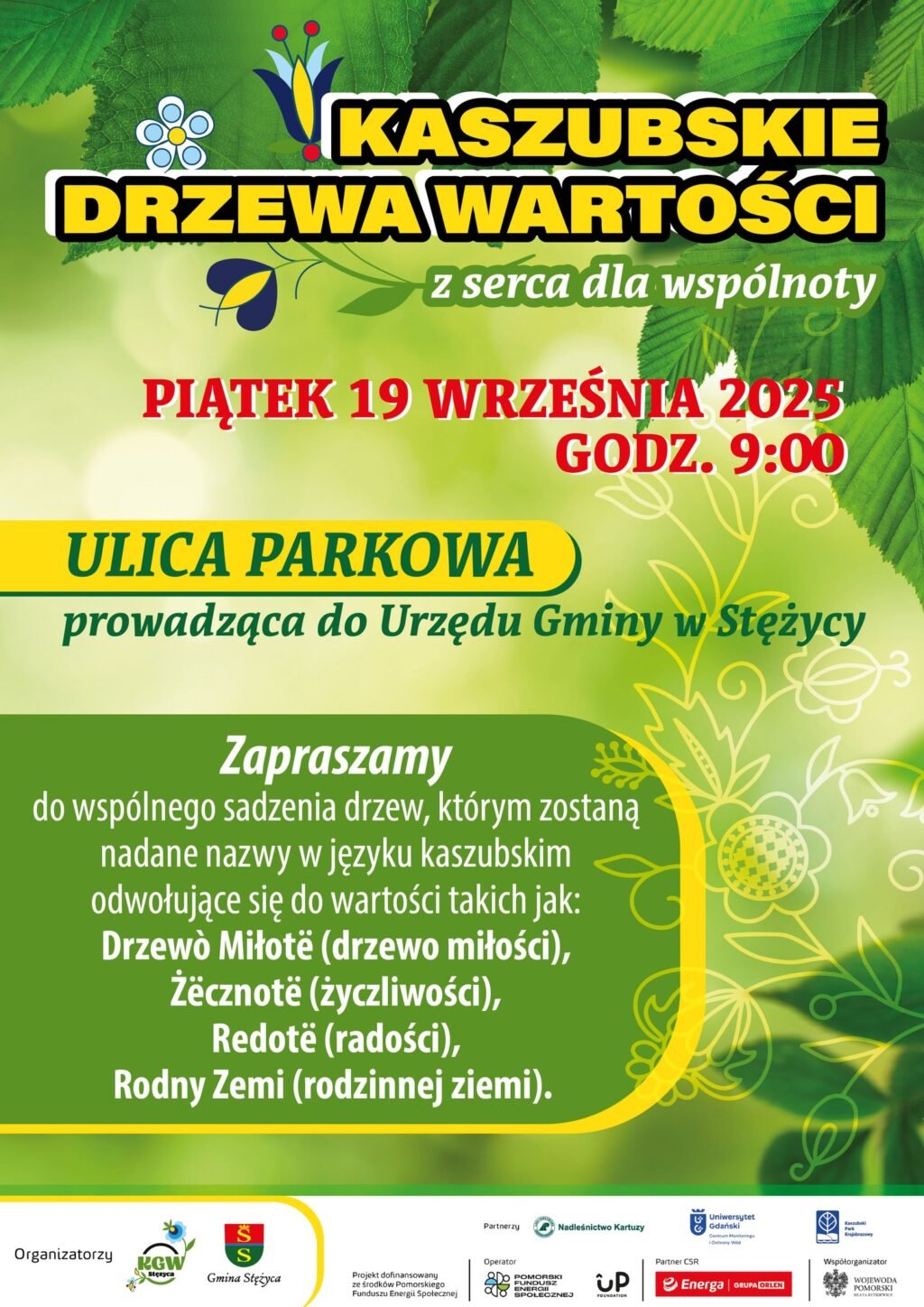 W piątek, 19 września 2025 roku, o godzinie 9.00 przy ul. Parkowej w Stężycy odbędzie się wydarzenie pod nazwą „Kaszubskie Drzewa Wartości”.