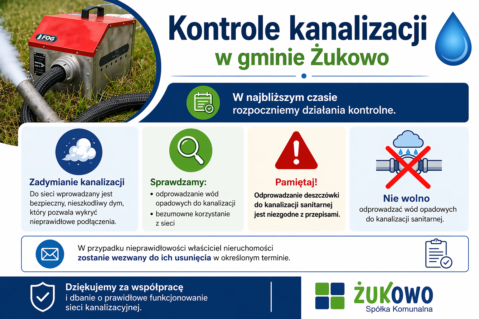 W najbliższym czasie na terenie gminy Żukowo prowadzone będą kontrole związane z funkcjonowaniem kanalizacji sanitarnej. Działania mają na celu wykrycie nieprawidłowości i poprawę działania całego systemu.