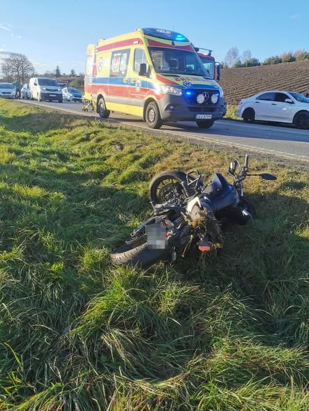 Jak informuje rzecznik Komendy Wojewódzkiej Policji w Gdańsku, dziś tuż przed godz. 14 w Lniskach (gm. Żukowo) na drodze krajowej nr 7 doszło do zderzenia samochodu osobowego z motocyklistą.