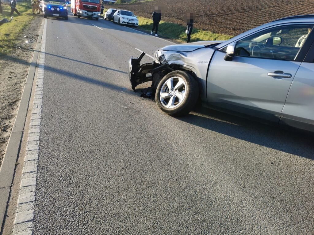 AKTUALIZACJA – Funkcjonariusze policyjni wstępnie ustalili, że kierujący toyotą 73-latek jadąc w kierunku Żukowa podczas skrętu w lewo nie ustąpił pierwszeństwa przejazdu wyprzedzającemu go motocyklowi, którym kierował 34-latek. W wyniku zdarzenia kierujący jednośladem przytomny został zabrany do szpitala.
