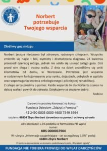 Każde wsparcie to dla Norberta nadzieja na zdrowie i powrót do normalnego życia.