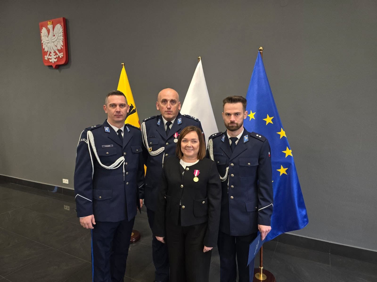 Podczas wydarzenia wręczono również odznaczenia państwowe i resortowe, w tym Medale za Długoletnią Służbę, Medale za Zasługi dla Policji oraz odznaki „Zasłużony Policjant”. Medal Złoty za Długoletnią Służbę otrzymała Barbara Jank, pracownik Komendy Powiatowej Policji w Kartuzach.