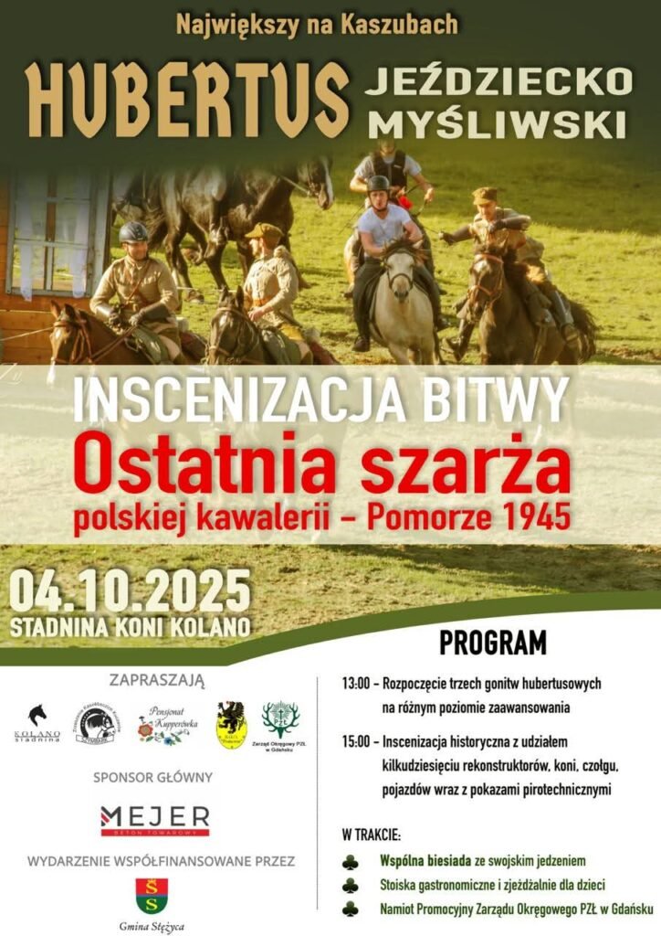 Wydarzenie przyciągnie zarówno miłośników koni, pasjonatów historii, jak i całe rodziny. Punktem kulminacyjnym będzie inscenizacja historyczna „Ostatnia szarża polskiej kawalerii – Pomorze 1945”, w której weźmie udział blisko 100 uczestników, konie, czołg, pojazdy z epoki oraz efekty pirotechniczne, przenoszące widzów w realia minionych czasów.