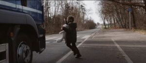 Nigdy nie przechodź tuż przed kabiną ciężarówki.