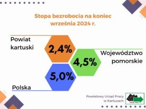 Na koniec września 2024 roku stopa bezrobocia w powiecie kartuskim wyniosła jedynie 2,4 procenta. Dla porównania, wskaźnik ten w województwie pomorskim to 4,5 procent, a w całym kraju 5 procent.