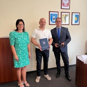 W czwartek, 24 lipca 2025 r., Wójt Gminy Somonino podpisał umowę na realizację zadania pn. „Modernizacja drogi transportu rolnego w Ramlejach”. To kolejny krok w kierunku poprawy infrastruktury drogowej na terenie gminy, który przyczyni się do zwiększenia komfortu i bezpieczeństwa użytkowników, a także usprawni codzienne funkcjonowanie lokalnych gospodarstw rolnych.