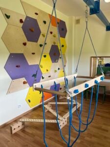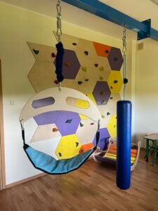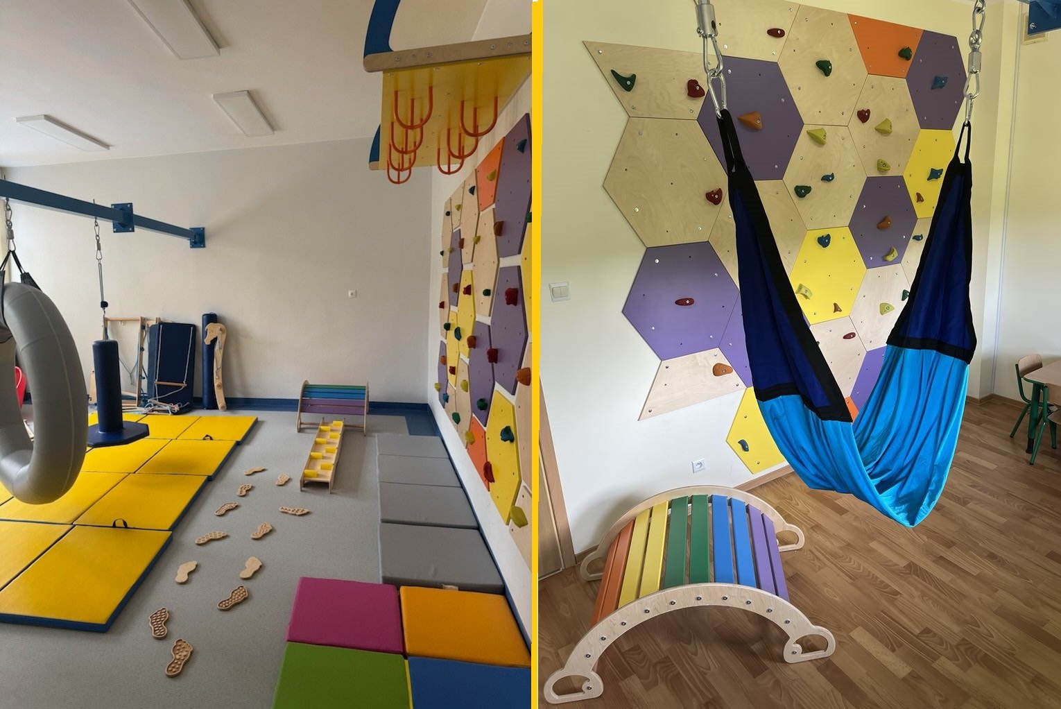 Nowo utworzone przestrzenie zostały wyposażone w specjalistyczny sprzęt, wspomagający rozwój koordynacji ruchowej, równowagi, percepcji zmysłowej oraz umiejętności koncentracji. Wśród zakupionych elementów znalazły się między innymi huśtawka i hamak, grzybek sensoryczny, podwieszany konik bujany, lina do wspinaczki, ścianka wspinaczkowa, kładki sensoryczne, bujak, rampa, zestaw woreczków sensorycznych oraz zestaw do treningu zapachowego.