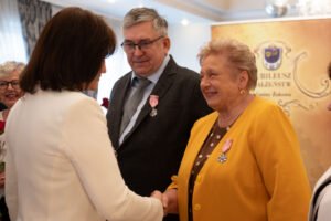 Podczas wydarzenia jubilaci zostali uhonorowani Medalami za Długoletnie Pożycie Małżeńskie, które w imieniu Prezydenta Rzeczypospolitej Polskiej wręczyła burmistrz Mariola Zmudzińska.