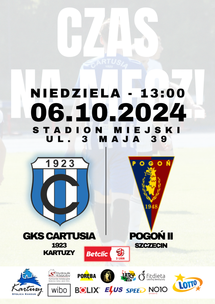 W niedzielę, 6 października o godzinie 13:00, na stadionie miejskim w Kartuzach odbędzie się długo oczekiwane spotkanie piłkarskie, w którym GKS Cartusia 1923 Kartuzy podejmie drużynę Pogoni II Szczecin.