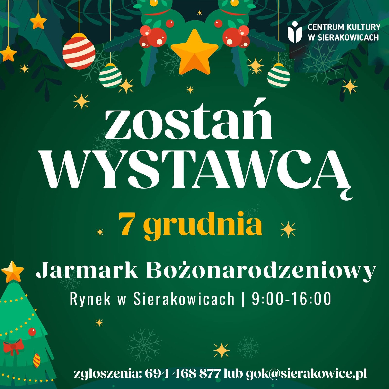 Poczuj magię Świąt – zgłoś się na Jarmark Bożonarodzeniowy w Sierakowicach!
