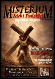 W niedzielę, 22 marca 2026 roku o godz. 17.00, w Parafii Niepokalanego Poczęcia Najświętszej Maryi Panny w Grzybnie odbędzie się wyjątkowe wydarzenie – Misterium Męki Pańskiej w formie rock opery.