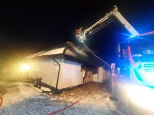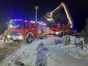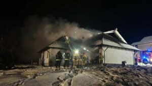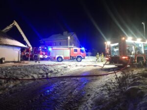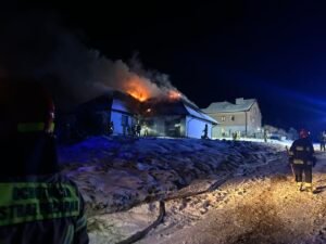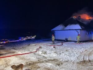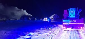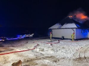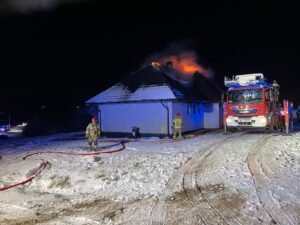 W Sławkach (gm. Somonino) przy ul. Spacerowej palił się murowany budynek mieszkalny w kształcie litery “L”, w którym znajdował się również garaż. Zniszczeniu uległo m. in. całe poddasze z wyposażeniem, konstrukcja dachowa, kotłownia oraz garaż.