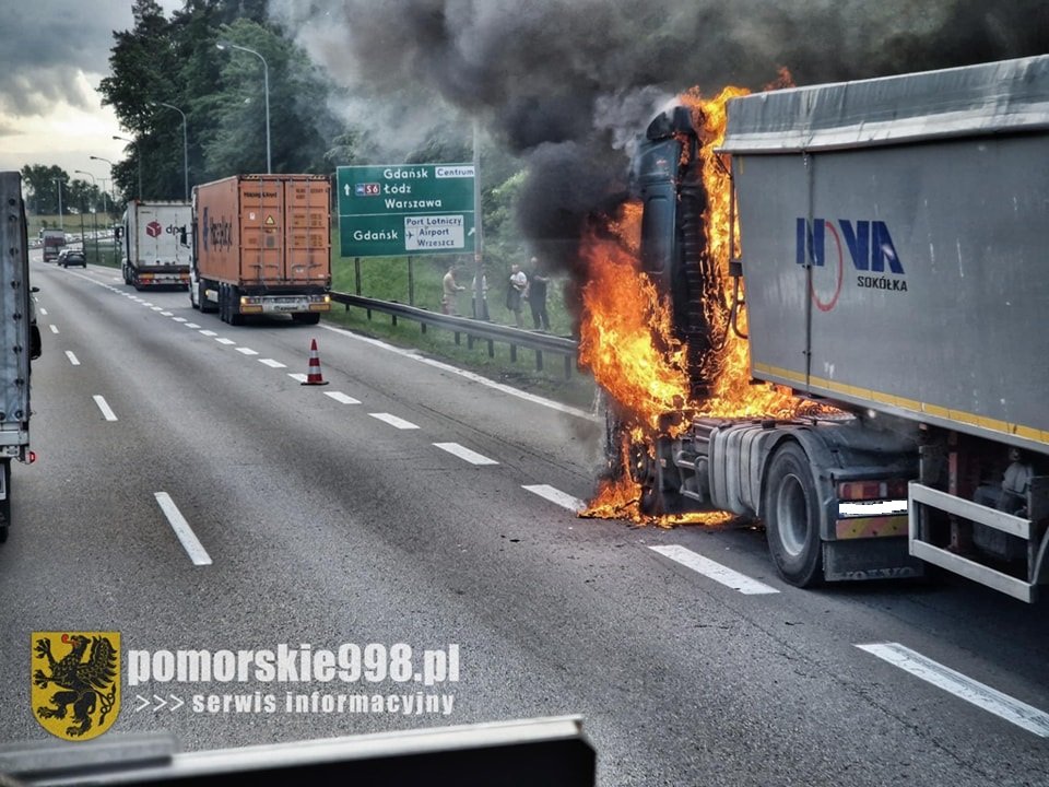 Pożar ciężarówki na S6. Utrudnienia w kierunku A1