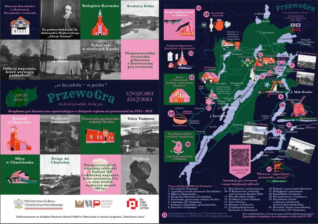 Na czym polega „PrzewoGra”? „PrzewoGra” to innowacyjna gra terenowa, która umożliwia odkrywanie Chmielna i jego okolic w zupełnie nowy sposób. Gracze, rozpoczynając swoją przygodę w Centrum Informacji Turystycznej w Chmielnie, otrzymują mapę z trasą prowadzącą przez 20 niezwykłych lokalizacji. Każde z tych miejsc nawiązuje do historycznych opisów zawartych w „Zdrojach Raduni”, co pozwala uczestnikom zobaczyć, jak przez ponad 100 lat zmieniała się kaszubska ziemia.