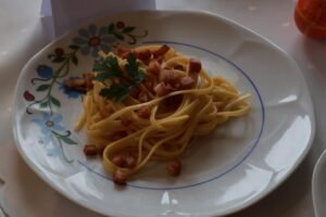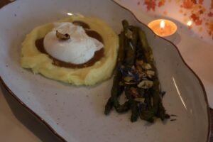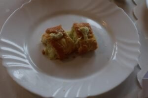 1. Powiatowy Zespół Szkół w Sierakowicach (beza pavlova z gruszą i kremem z koziego sera oraz jajkiem, tarta na kruchym cieście z jajkami, łososiem oraz dynią)