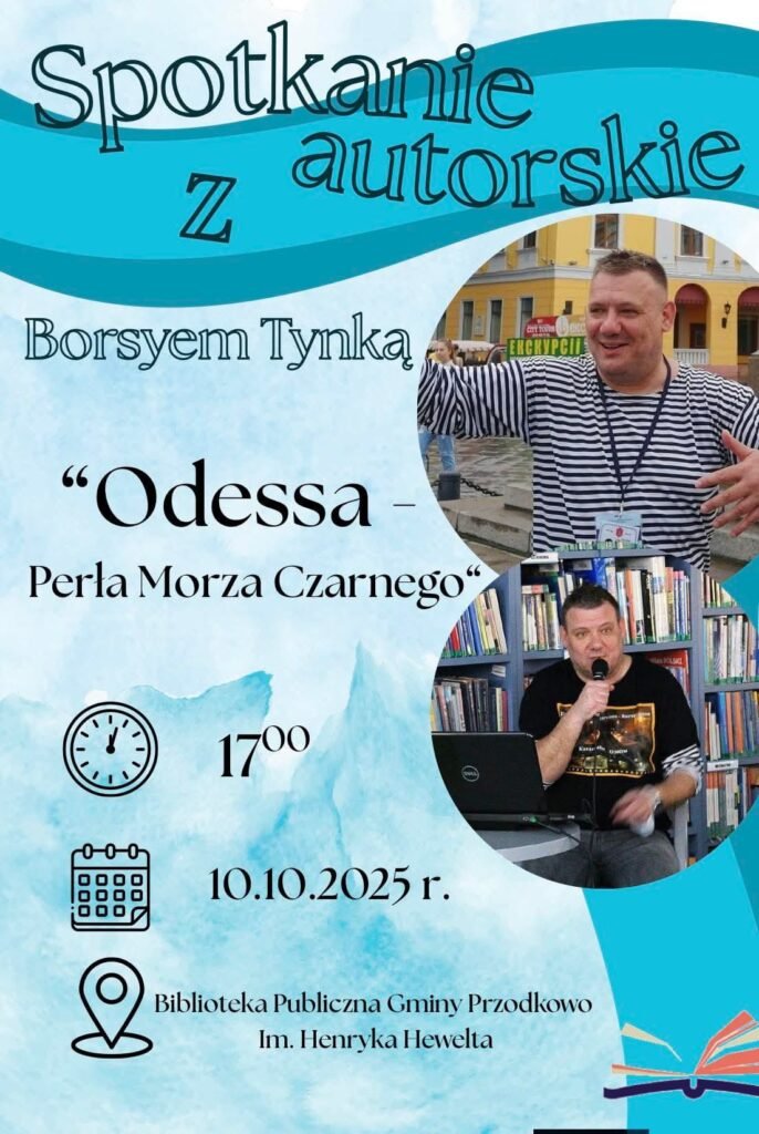 Biblioteka Publiczna Gminy Przodkowo im. Henryka Hewelta zaprasza na wyjątkowe wydarzenie literacko-podróżnicze. Już 10 października 2025 r. o godz. 17.00 odbędzie się spotkanie autorskie z Borysem Tynką – pasjonatem Ukrainy, pilotem wycieczek oraz certyfikowanym przewodnikiem po Odessie.