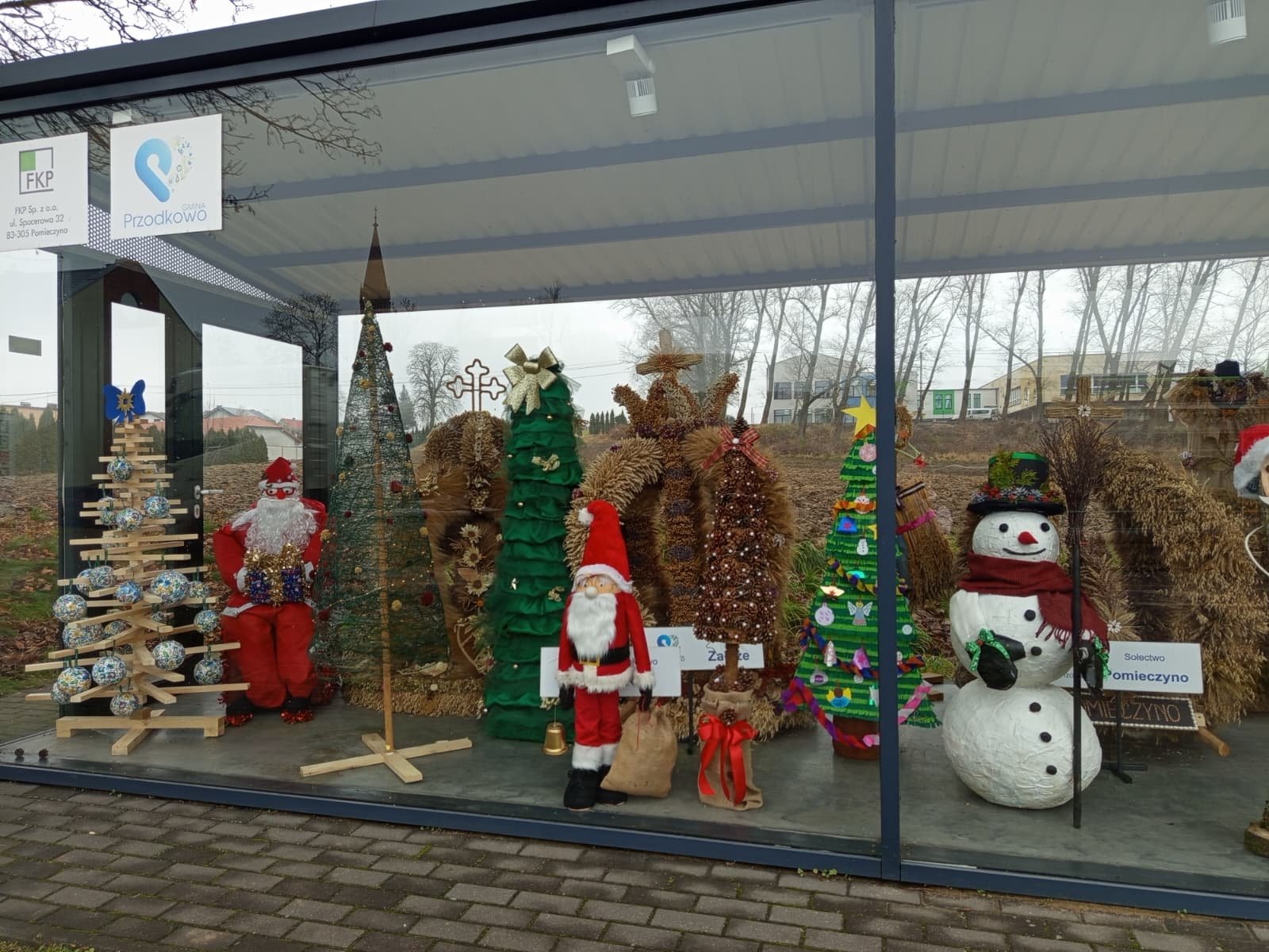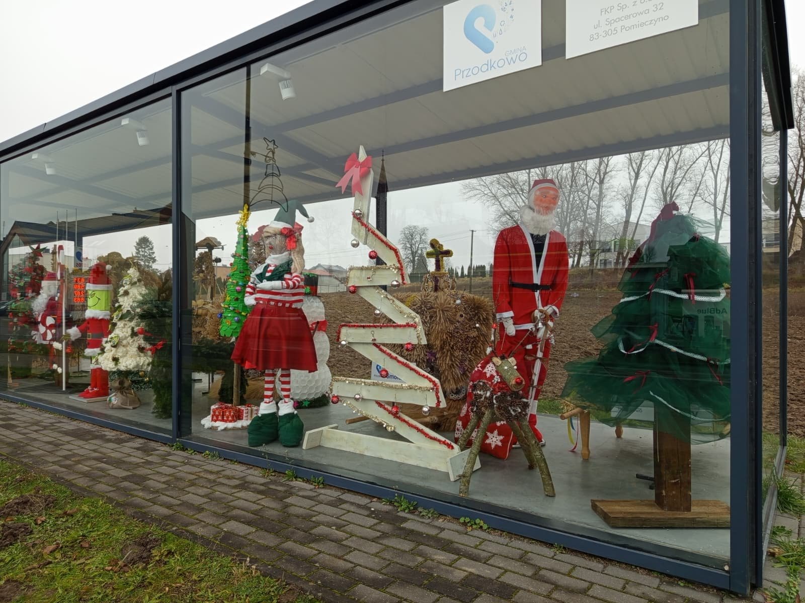 W centrum Przodkowa udostępniono do oglądania świąteczne prace przygotowane w ramach konkursu bożonarodzeniowego. W gablocie pojawiły się m.in. przestrzenne postaci świątecznych bohaterów – w tym Grincha, Mikołaja oraz innych charakterystycznych figur – a także różnorodne choinki wykonane w kreatywnych formach.