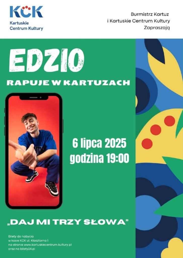 Kartuskie Centrum Kultury szykuje prawdziwą muzyczną ucztę. 6 lipca 2025 r. o godzinie 19.00 na scenie pojawi się Edzio – raper, freestylowiec i gwiazda młodego pokolenia, który podbija internet i sceny w całej Polsce.