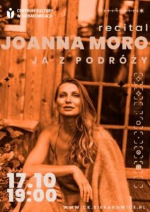 Centrum Kultury w Sierakowicach zaprasza na recital Joanny Moro pt. „Ja z podróży”. Wydarzenie odbędzie się 17 października 2025 roku.