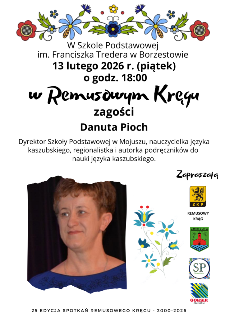 Miłośnicy języka kaszubskiego, regionalnej kultury i lokalnej historii ponownie spotkają się w ramach Remusowego Kręgu. Kolejne wydarzenie odbędzie się 13 lutego 2026 roku (piątek) o godz. 18.00 w Szkole Podstawowej im. Franciszka Tredera w Borzestowie.