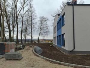 W ramach inwestycji wykonano również niezbędną infrastrukturę towarzyszącą – drogę pożarową, ciągi piesze, elementy małej architektury oraz ogrodzenie terenu.