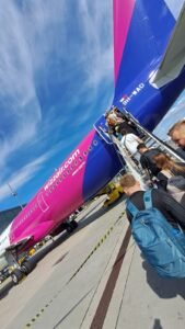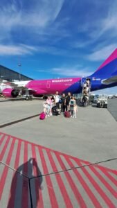 Po kilku minutach zostaliśmy wyprowadzeni z samolotu tylnym wyjściem i skierowani do terminala. Na miejscu ustawiono nas w kolejce, w której odbieraliśmy vouchery na nocleg i posiłek – wszystko zorganizowane przez linię Wizz Air. Czekał na nas 12-osobowy bus, który kursował wahadłowo, a na pokładzie samolotu było około 250 pasażerów, więc przewóz wszystkich do hotelu trwał bardzo długo.