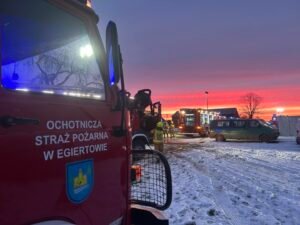 Na miejscu użyto więc 3. podnośników. Z racji tego, że warsztat znajdował się w obiekcie, wiązało to się z dużym nagromadzeniem substancji łatwopalnych. Na ten moment straż pożarna szacuje straty. Okoliczności pożaru ustala policja. Nikt nie ucierpiał, jednak po zakończonych działaniach właściciel obiektu źle się poczuł i konieczne było przewiezienie go do placówki medycznej.