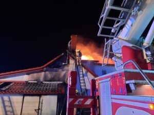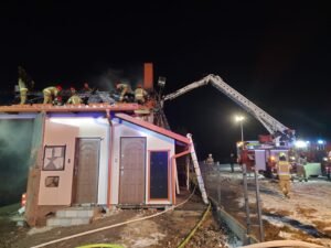 Jak mówi Mateusz Pielowski z Komendy Powiatowej PSP w Kartuzach, zgłodzenie dotyczące pożaru budynku gospodarczo-mieszkalnego, w którym znajdował się również warsztat, otrzymano dziś w nocy o godz. 3.47. Kilka minut po godz. 10 do bazy powrócił ostatni zastęp biorący udział w działaniach. Interweniowało łącznie 13 zastępów – blisko 60 strażaków.