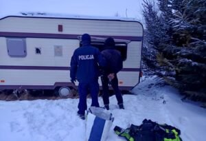 Na miejsce natychmiast skierowano dzielnicowych, którzy przeanalizowali nagrania z monitoringu i szybko wytypowali podejrzanego. W trakcie dalszych działań funkcjonariusze namierzyli 50-latka… w cudzej przyczepie kempingowej.